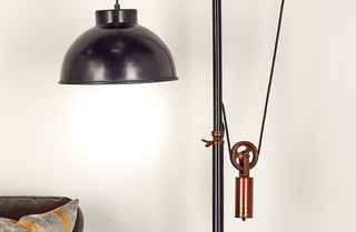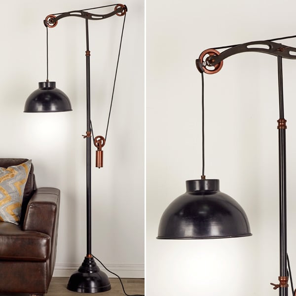 We love how the brown tones andmetal compliment each other and somehow fade into the next. The round shade and the pulley system give this lamp an architectural appeal that speaks to us. Use this lamp in any room to brighten up an area and add that final touch of beauty. Place these in the bedroom in the living room and even in your entryways for every one to see!