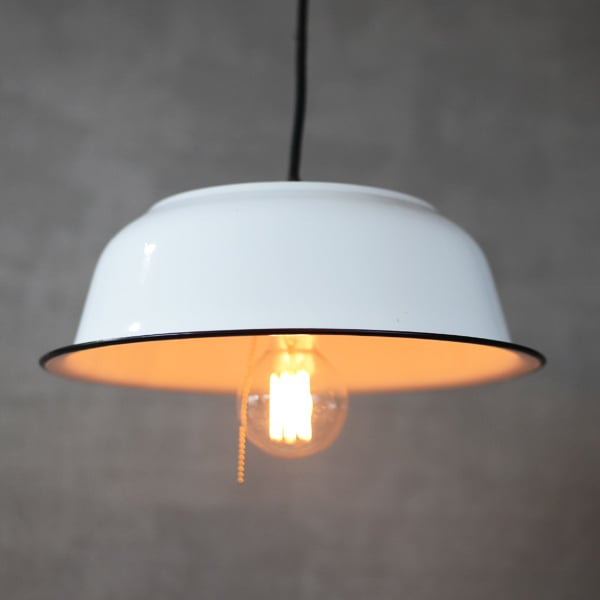 It’s love at first sight!!! You all know how much we ADORE enamelware which is why we fell head over heels for this super cute Enamel Pendant Light. With its chippy paint charming glow and adorable detailing we just had to bring this gem your way!