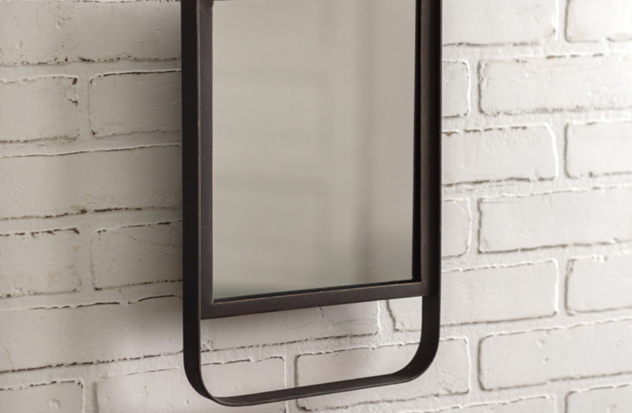 With a vintage and industrial design, this simple yet GORGEOUS mirror has unlimited possibilities for styling! This decorative wall mirror will make a great addition to your bathroom, bedroom or foyer! It is the perfect size and will surely make a statement while effortlessly tying the look of your home together.
