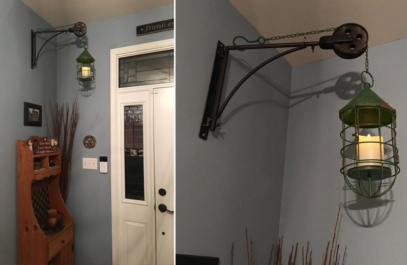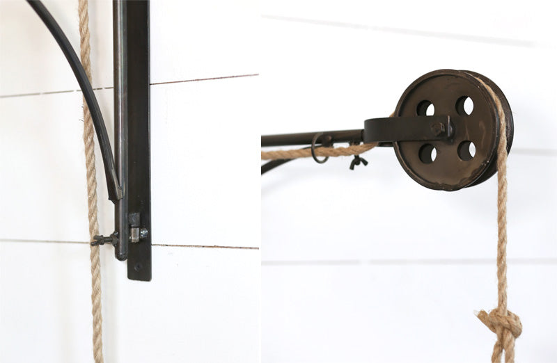 The best part about this industrial pulley system is its versatility. You can let your imagination run wild with this one! It can hang literally anything! We could see this in your entryway with a lantern hanging from it bringing a soft glow on a dark night or holding a wire basket in your kitchen encasing all your fruits and veggies! We LOVE to see what our stealers come up with especially with items like this one!