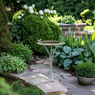 Elevate your garden with our Antique Green Iron Bird Bath, a charming focal point that invites nature to your outdoor space. Crafted with intricate detailing and finished in a classic antique green, this bird bath exudes vintage elegance and rustic charm. Perfect for attracting feathered friends and adding a touch of whimsy to your garden, it provides a serene watering spot for birds while adding visual interest to your landscape. Whether placed among flowers or nestled in a quiet corner, this bird bath brings both beauty and functionality to your outdoor sanctuary.