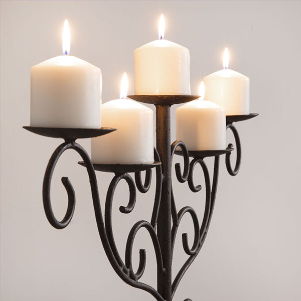 Introducing our exquisite 60 Inch Iron Scrollwork Candle Holder Stand, where elegance meets functionality in a symphony of design. Crafted with meticulous attention to detail, this candle holder stand is a statement piece that adds an aura of sophistication to any space. With its intricate scroll design and towering stature, it captivates the eye and elevates the ambiance of your home or event.