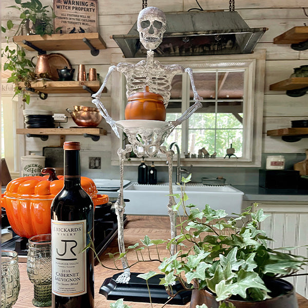 Picture this: your candy bowl cradled in its skeletal arms, ready to greet trick-or-treaters with a chilling grin. This guy’s not just a statue; he’s the ultimate host for your Halloween festivities. Place him by your front door and watch as he becomes the talk of the town (or at least the neighborhood).