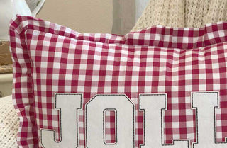 This pillow is embellished the phrase "Jolly" ruffles and it reverses to a red and white checkered pattern for a vintage farmhouse look! The living room a bedroom foyer or wherever you put it we are sure it will look flawless! We can't wait to see where you put this beauty!