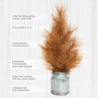 Elevate your harvest decor with our Galvanized Jug Harvest Arrangement - a charming blend of rustic elegance and seasonal charm.