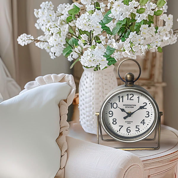 - Whether as a functional timekeeper or a decorative accent, the Kensington Table Clock invites you to embrace the charm of yesteryears while enjoying the convenience and style it brings to your living space.