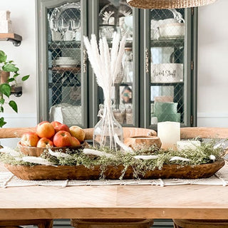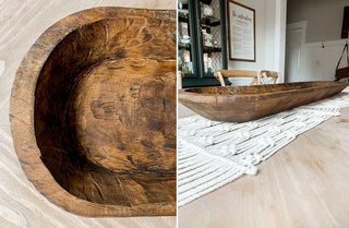 Use this dough bowl platter to display your plated appetizers, utensils and napkins or even as a centerpiece for you family gatherings! Just add some greenery and candles! This would be the perfect catch-all near your front door or showcasing your favorite photo frames on your console table!