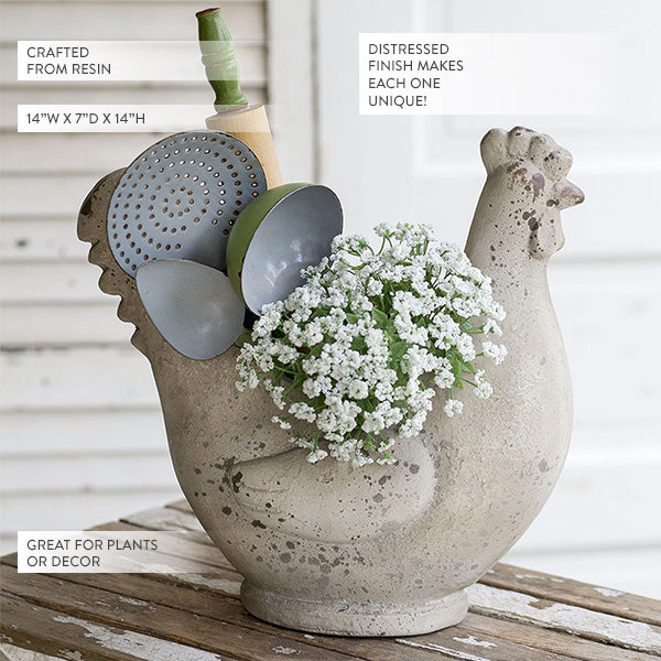 Explore the myriad possibilities with our Large Barnyard Hen Planter and let your imagination take flight. Order now and infuse your home with the rustic charm of this versatile and delightful piece.