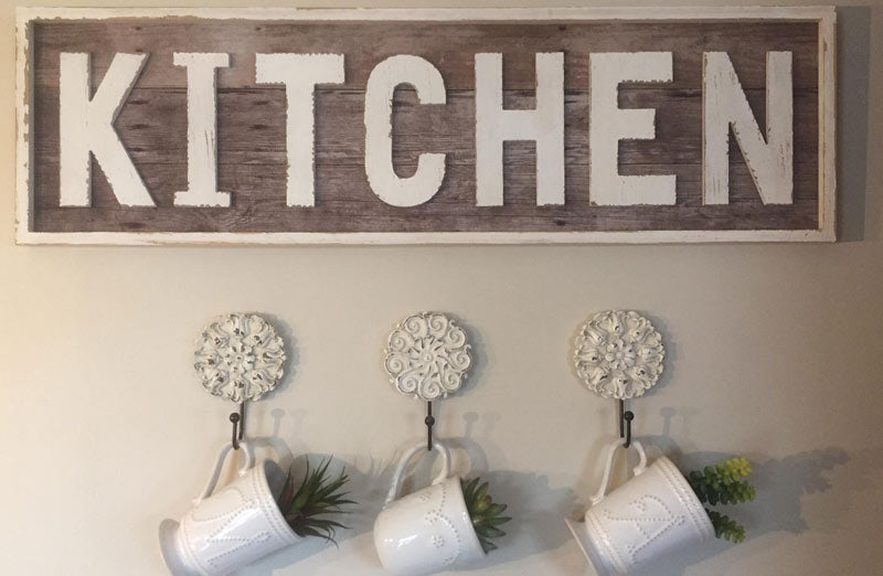 This antiqued raised wood sign is just so perfect for any type of decor and we are truly in LOVE! Distressed in design and unique in style this vintage kitchen sign reminds us of a time gone by.