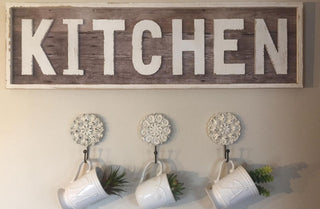 This LARGE kitchen sign speaks volumes to us with its gorgeous design and versatility. You can display this piece in almost every room in the house but obviously it would be PERFECT in your kitchen!