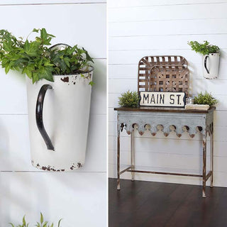 The uses for this planter pitcher are truly unlimited! Let's start with the display! Whether on your dining table as a vase or in your living room next to your fireplace...this piece will spark a conversation and make a statement! Add that warm vintage feeling to your home by filling it with cotton stems olive stems or even as the perfect umbrella holder in your entryway! Remember it's 10" high so it makes the perfect accent to your dining table foyer entryway table or even bedside nightstand!