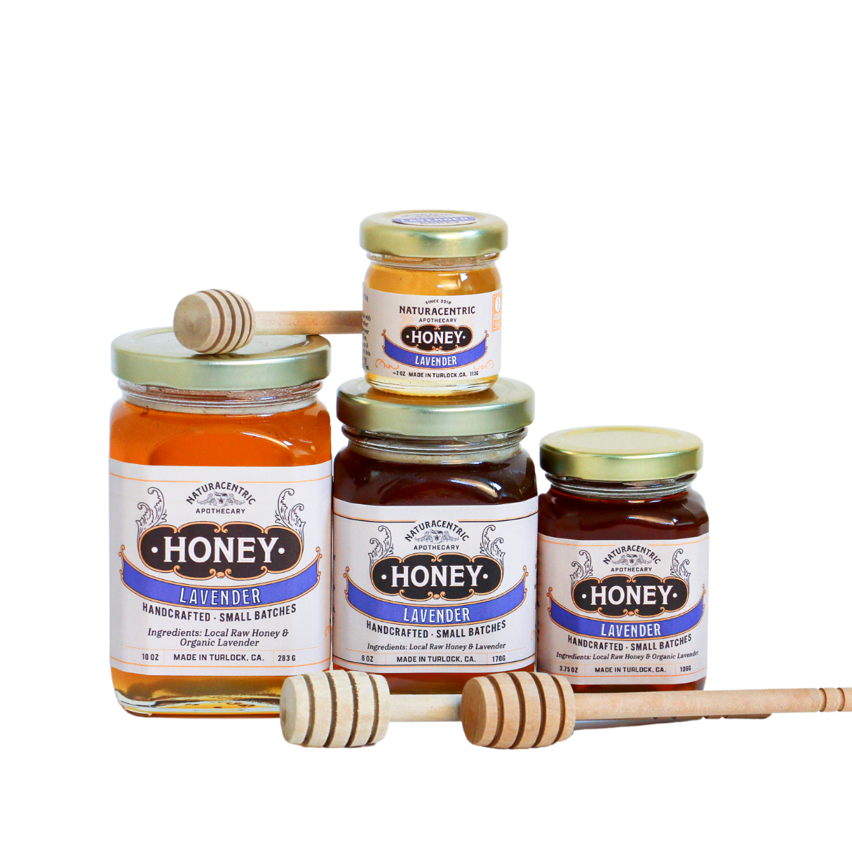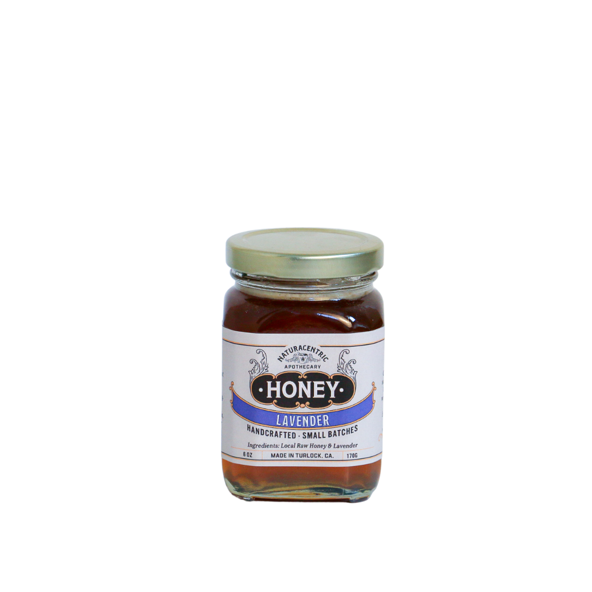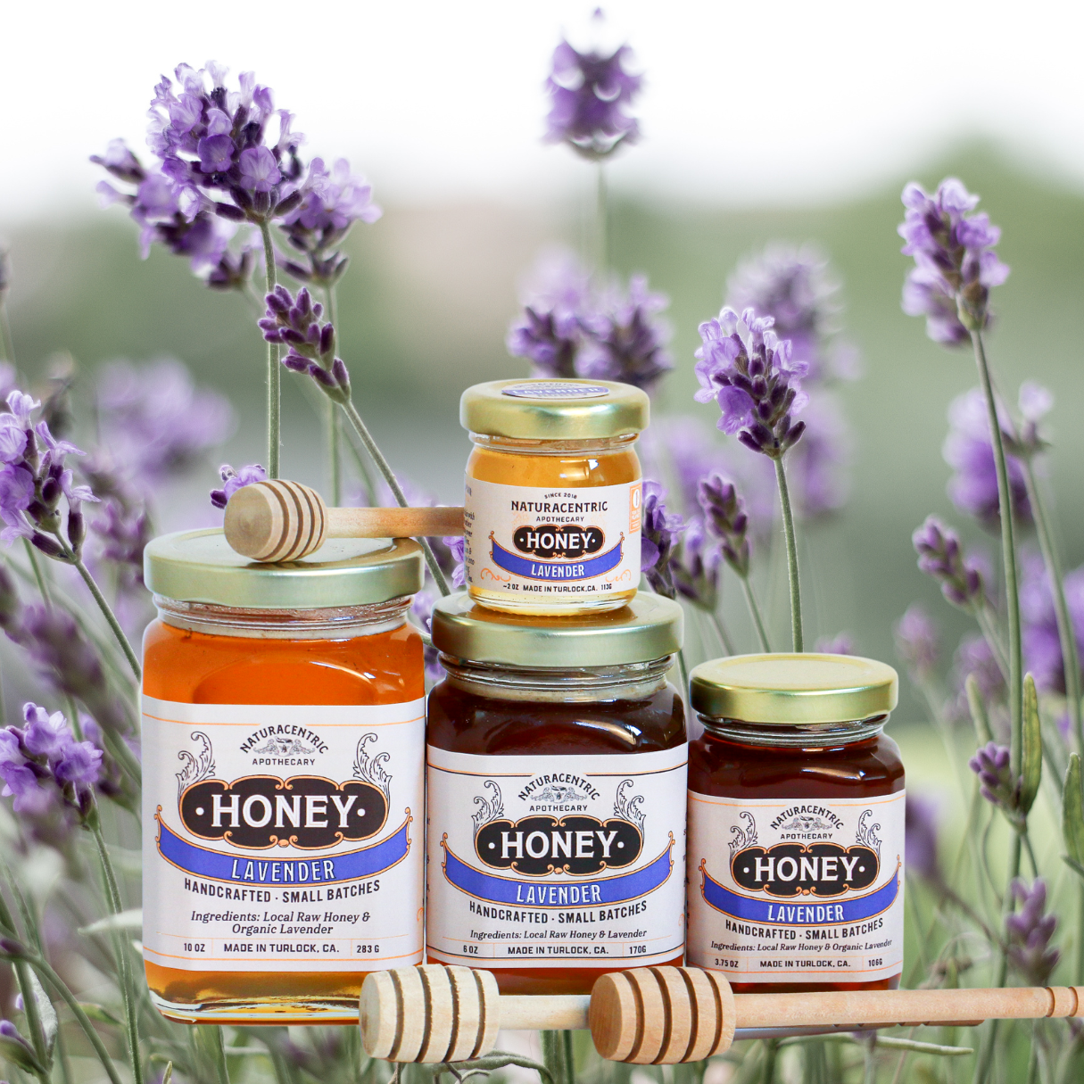 This Hazy Raw Local Honey is paired with Lavender flowers.