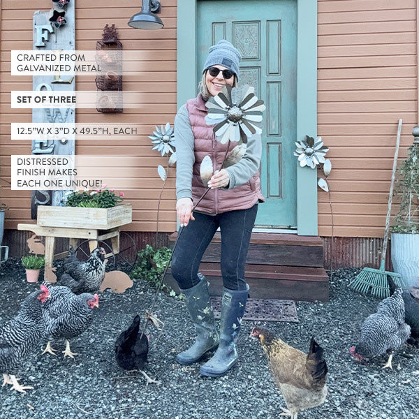 For a limited time only, bring home this charming trio and let your garden bloom with effortless beauty! Whether you love spring flowers or enjoy year-round floral decor, these galvanized metal garden stakes are a must-have for any farmhouse-style outdoor space.