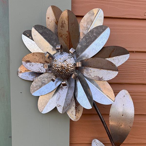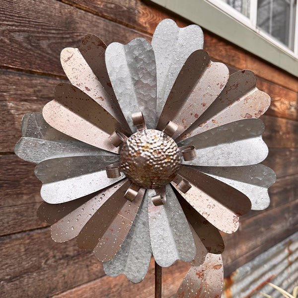 - Rustic Metal Charm – Crafted from galvanized metal with a weathered finish, these layered flowers offer a farmhouse-inspired look that blends beautifully with any garden.