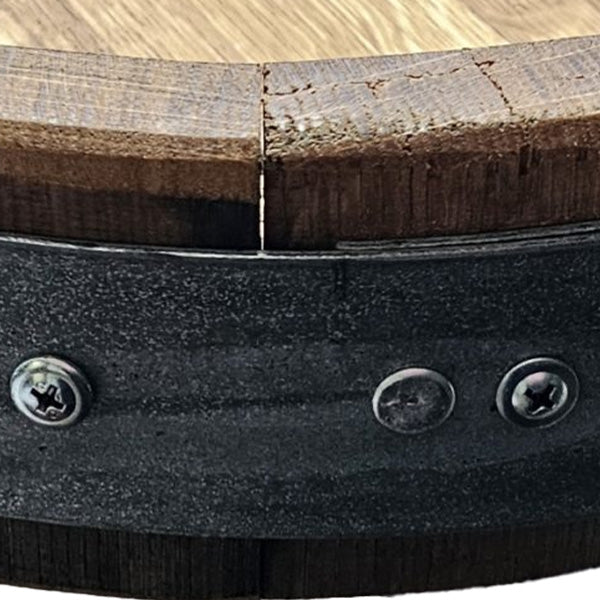 Crafted from genuine reclaimed whiskey barrel staves with original cooperage markings still visible.