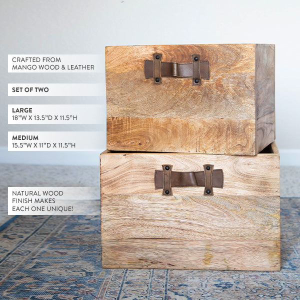 STOP. STORAGE. STRUGGLES. Stealers—your Cyber Monday upgrade just dropped, and it’s a total showstopper. Our Set of Two Leather-Handled Mango Wood Storage Boxes is back, and they are absolutely GORGEOUS with today’s can’t-miss deal.
