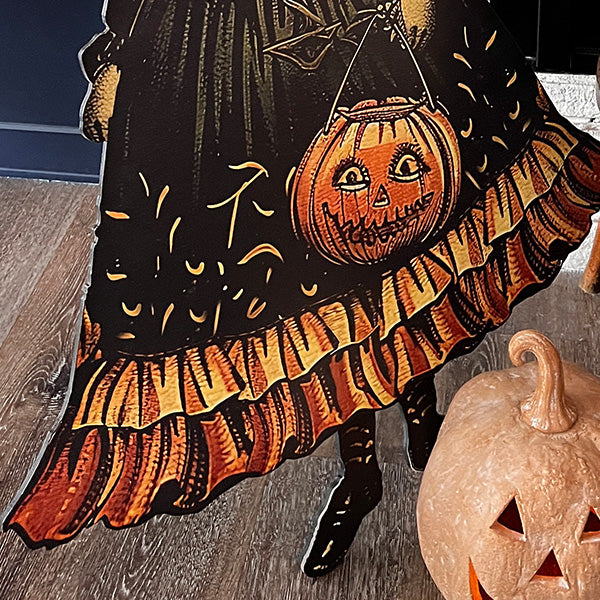 Crafted with durability in mind, the back of the cutout features a sturdy iron bracket to ensure it stands tall and steady wherever you choose to display it. The detailed design captures the playful spirit of Halloween, making it a must-have for anyone looking to create a bewitching atmosphere.
