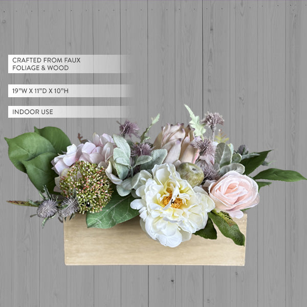- Beautifully crafted from faux foliage & wood