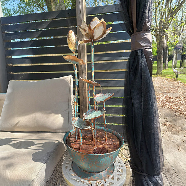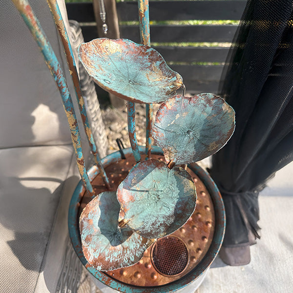 Get ready to kiss your stress goodbye with this absolutely life-changing Rustic Metal Lotus and Lily Pad Outdoor Fountain! This isn't just beautiful decor—it's your personal stress-melting machine that works 24/7 with the most soothing water sounds.