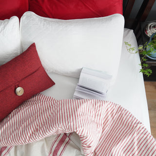 The Linen Texture Woven Button Decorative Pillow Cover is currently offered in six great colors, including Navy, Ivory, Gray, Red, Yellow, and Taupe. More colors may be offered soon.