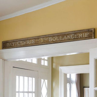 We LOVE french farmhouse decor and this piece is just that! The words "patisserie" and "boulangerie" remind us of Paris and romance.. *sigh* The distressed wood adds charm and elegance to this piece and the uncommon sizing of this makes it a talking point for any room! We could see this displayed in your kitchen or the top of the door molding in your dining room.