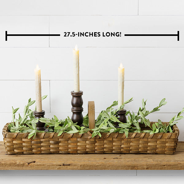Add holly, greenery, pinecones, or ornaments during the holidays inside this Long French Market Basket to create a warm and festive feel. How adorable would this be filled with pumpkins during fall?! During spring, add mason jars filled with beautiful faux flowers or real mini potted plants! This Long French Market Basket truly does it all! Its handle on the top adds even MORE character... Place this inside your pantry or on your table and fill with treats for the kids! The flat bottom of the basket allows for a cute table display too!
