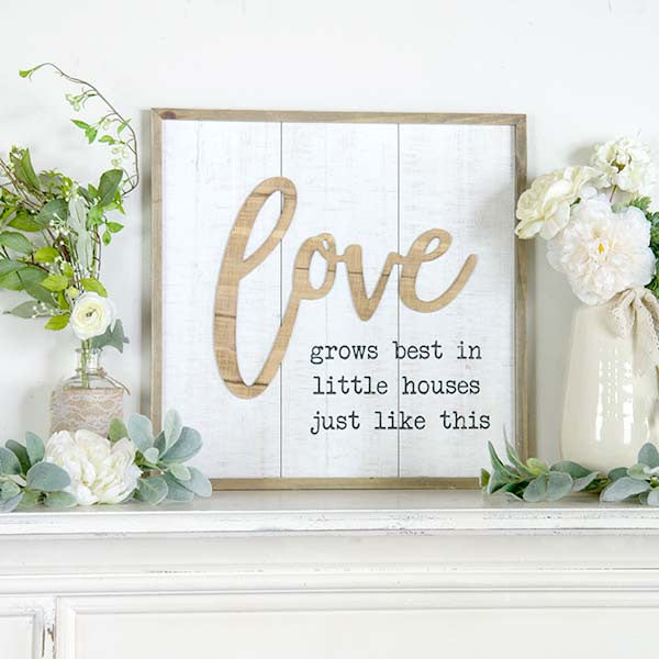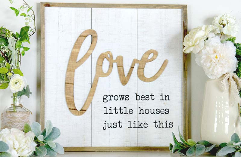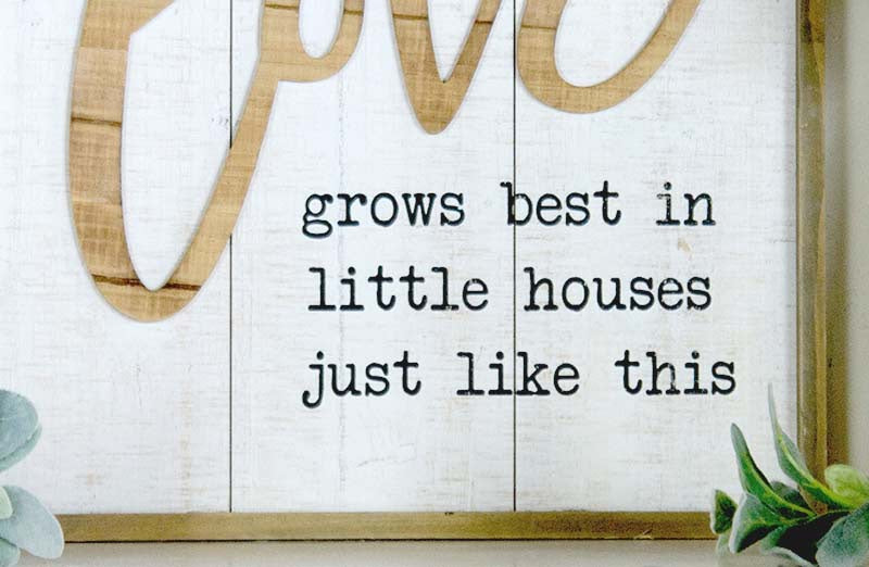 But what resonates most with us is the message... "Love grows best in little houses just like this." I mean does it get any more beautiful than that?! Not only the sweetest sentiment but the PERFECT size for any farmhouse!