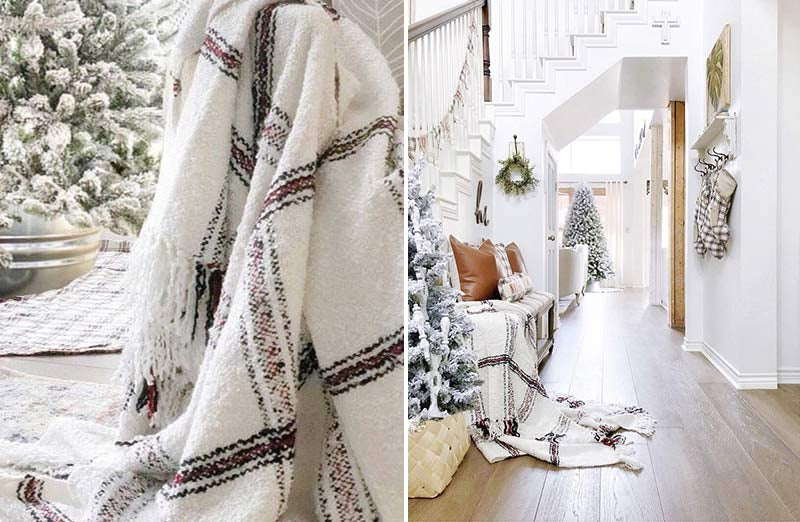 This cozy woven throw blanket will be the perfect addition to your comfy holiday couch. Imagine cuddling up with this gem by the fire with Christmas cookies with the scent of peppermint in wafting throughout the house. We definitely can! This snuggly blanket is designed to fit with any home style whether you are at mountain house or in the comfort of your home.