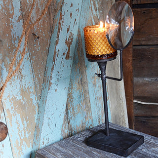 This gorgeous magnify glass amplifies light ten times from any burning pillar candle making a grand statement in any place of your home. Perfect for your den office bookshelf or library this iron magnifying glass pillar stand will truly make a difference in your home’s décor.