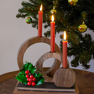 Illuminate your space with this stunning set of three circular mango wood taper candle holders, each showcasing the unique beauty of natural wood grain and a sophisticated design. Crafted to bring warmth and elegance to any decor style, these holders are versatile enough to elevate a cozy evening indoors or serve as a charming centerpiece for gatherings. Made from solid mango wood, they offer not only an earthy aesthetic but also a durable and sustainable option for your home decor.