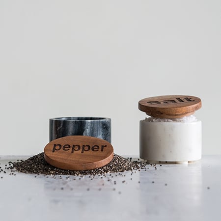 Today’s steal is just A-D-O-R-A-B-L-E! We are loooooving the sleek style of the black and white marble of these salt and peeper holders! The wood lids with “Salt” and “Pepper” etched on them are just too cute!