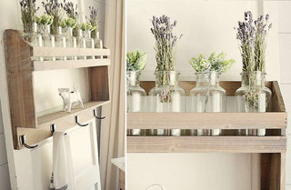 First things first... The FUNCTION of this piece truly makes this one a KEEPER! This features a beautiful shelf like top with a front enclosure so that you can safely display all of your favorite glass bottles mason jars and flower vases! Fill them with firefly lights and freshly picked flowers to really draw the eye up and create a beautiful pop of color! The middle of this coat rack ALSO has an area that acts as a shelf if needed! Place your favorite vintage trinkets or signs here to add a ton of charm!