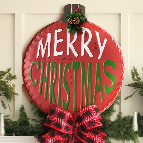 The vibrant red and green colors of the ornament sign are sure to catch the eye and bring a festive atmosphere to your space. The traditional ornament shape adds a touch of nostalgia and charm.