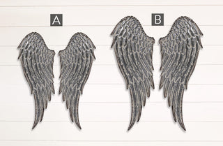 Choose between two sizes of our set of decorative wall art to dress up any bare wall or empty space and create a statement that won’t go unnoticed. The aged look of our angel wings accent decor will be sure to highlight your home’s décor in the most stunning way.