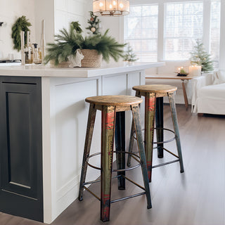 Upgrade your seating with the unique appeal of our Recycled Metal Bar Stool with Wooden Top — where sustainability meets style for a one-of-a-kind seating solution.