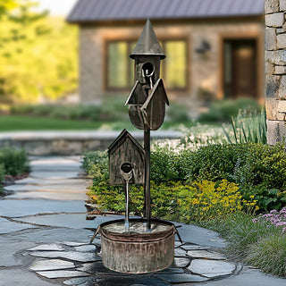 Here’s your ticket to relaxation—step into your garden and let the soothing sound of water gently trickling down this rustic fountain transport you to a place of serenity. The 32-Inch Galvanized Rustic Metal Birdhouse Garden Fountain combines natural charm with tranquil beauty, creating a peaceful retreat for you and your feathered friends. With its weathered finish and whimsical birdhouse design, this fountain is the perfect addition to any covered outdoor oasis.