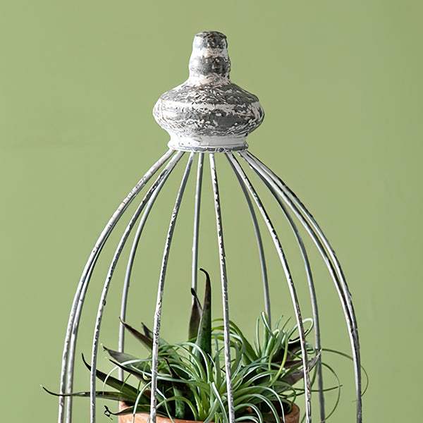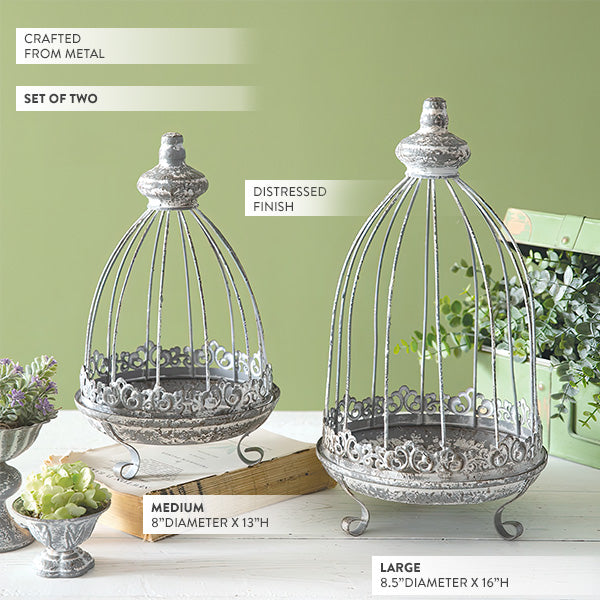 Introducing our Distressed Metal Candle Cloche with Ornate Base, Set of 2, designed to elevate your decor with a touch of sophistication and charm. Crafted with intricate detailing, these cloches serve as more than just protective covers for candles or plants; they are exquisite statement pieces that add a captivating allure to any setting. Whether adorning a side table or serving as a striking centerpiece, these cloches effortlessly infuse elegance into your space.
