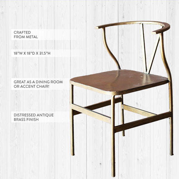 Elevate your decor with the timeless appeal of our Odette Antique Brass Metal Chair. Whether you're updating your dining area or adding a touch of elegance to your farmhouse decor, this piece of accent furniture is sure to make a statement.