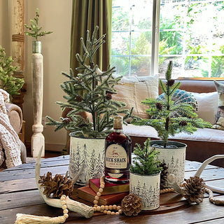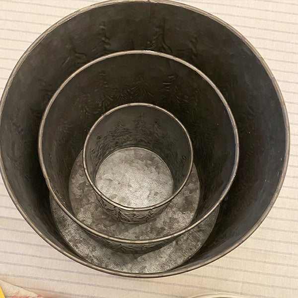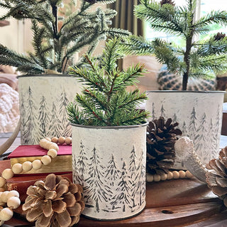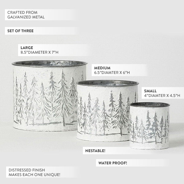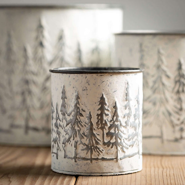 Fill these Embossed Metal Snowy Tree Planters with faux or real plants, holiday ornaments, garland and more. Place these in your family room, entryway and bedroom to bring the spirit of the holidays to your home. These planters will be a classic and continue to pull together your Christmas decor for years to come.