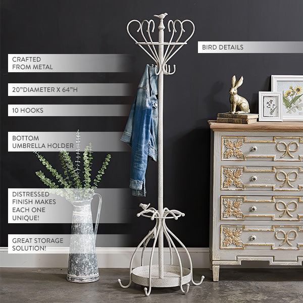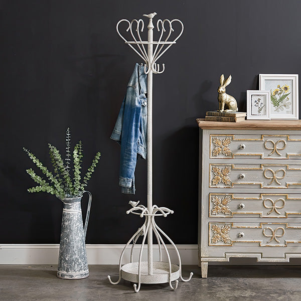 Elegant Bird Detail: The coat rack is adorned with intricate bird motifs, adding a whimsical and sophisticated touch to your home decor. These delicate details create a focal point that is both artistic and functional.