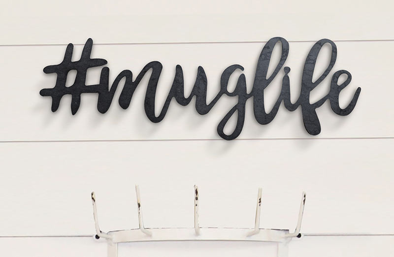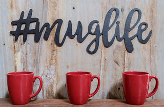Each one of our metal "#MugLife" signs are 21" long which makes it the ideal size to make a statement and adds a personalized touch to your space - Especially over those cup rack all you lovely ladies have! It will look stunning hung in your kitchen displaying all you beautiful Rae Dunn coffee bar or vignette. We can picture this sign hung above or laying up against your counter space in the kitchen. This sign will add dimension to any empty wall space and the color goes with any style and color scheme.