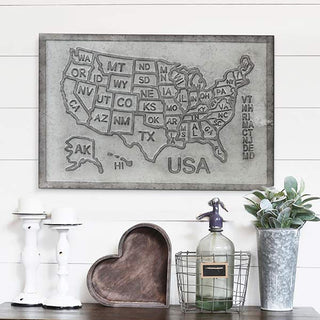We just LOVE this steal! This beauty is one of a kind. This metal embossed US MAP is such a statement maker! We have sold and seen A LOT of maps! But this one takes the cake (yum cake!)