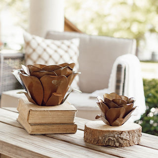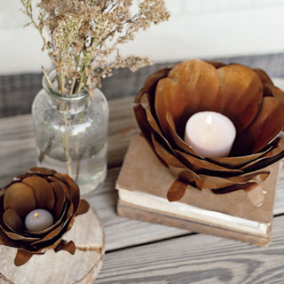 When we first laid eyes on these Metal Flower Blossom Candle Holders we could not stop thinking about the décor possibilities! Line them on the mantel and create a soft glow, make a statement on your console table or create a dining room table centerpiece with these being the star of the show!! You can even change the candles with the seasons, holidays or special occasions and INSTANTLY you have a whole new design style! Whether you display them together or use them separately, our Metal Flower Blossom Candle Holders will be sure to add a touch of elegance and a warm romantic glow to your space.