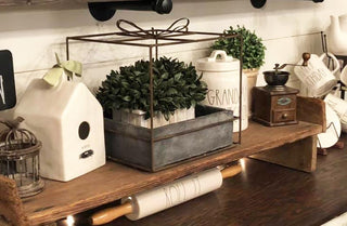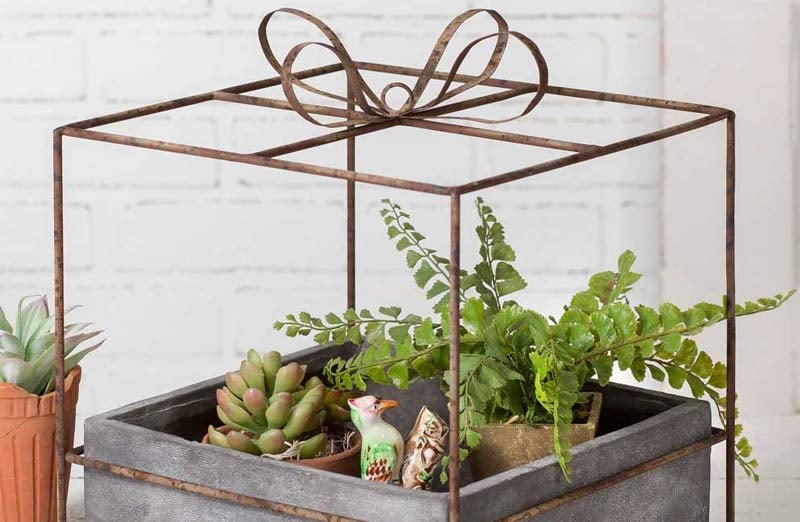 This piece is soo unique BUT it has that same ole' country feel! These baskets were designed to resemble a wrapped gift perfect for the holiday season! It's bursting with vintage charm!