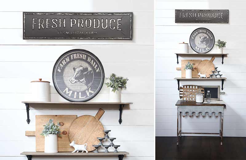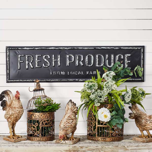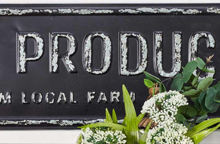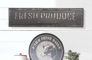 This antiqued inspired sign is just so perfect for any type of decor and we are truly in LOVE! Distressed in design and unique in style this vintage feel "Fresh Produce" sign reminds us of a time gone by.
