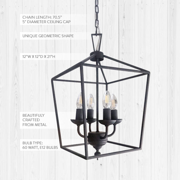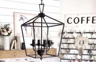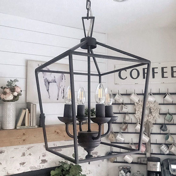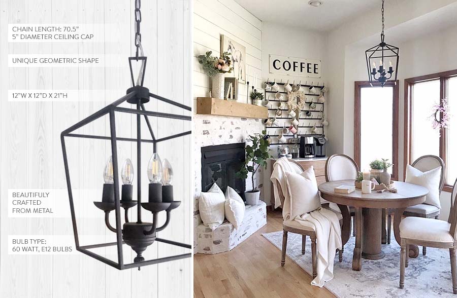 Our goal today with this chandelier is to brighten up your world with style and charm at a price you've only been able to dream of.   It has been very hard to find affordable AND beautiful lighting with so much character! It may have taken a while, but we have FINALLY found the perfect light! When we first caught sight of this light we were stopped dead in our tracks! We couldn't resist it and we're way too excited to bring it to you! These light fixtures are truly a dramatic, stunning way to light up your entryway, hallways, bedroom, dining room or eat-in-kitchen! These would even add a sophisticated feel to any office space! We adore the shape and the way the lines all tie together to create a chic light. We know you're probably on the edge of your seat guessing that these lights couldn't possibly be brought to you at an unbeatable price... Well, guess again! These babies won't break the bank in the least bit! Enjoy! PS - Check out how our friend @the.sycamore.farmhouse is using hers in the pics above!