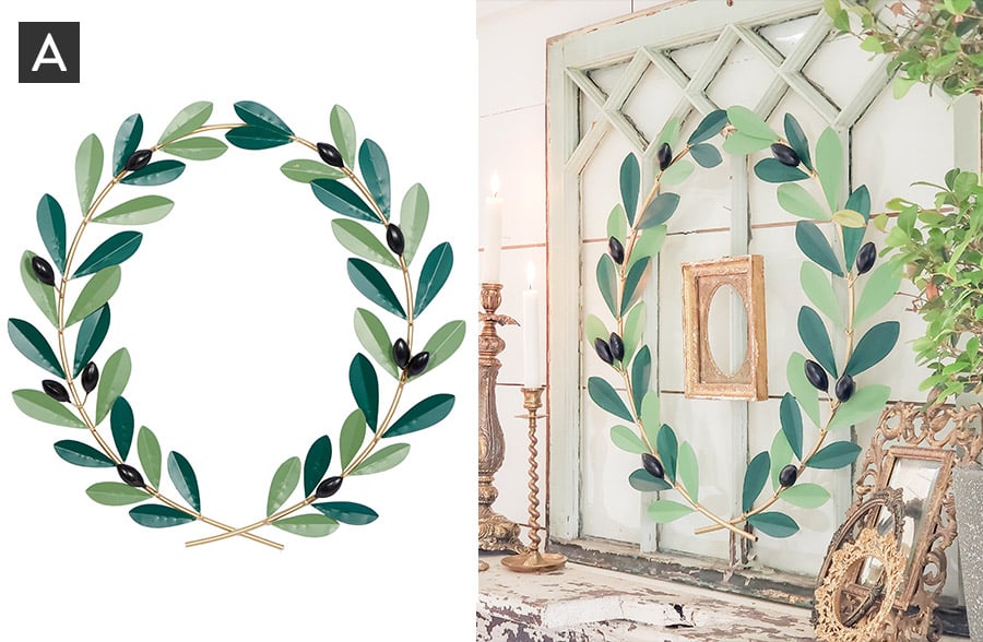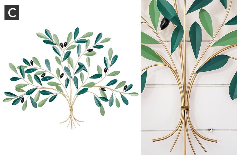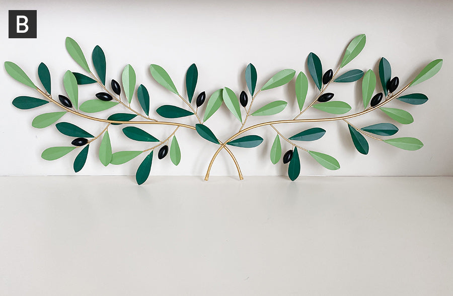 - Dimensions: A- Leaf Wreath: 22.5" L x 1.5" W x 22" H B- Leaf Spray: 45.5" L x 1.5" W x 16" H C- Tree: 40" L x 1.5" W x 30.5" H