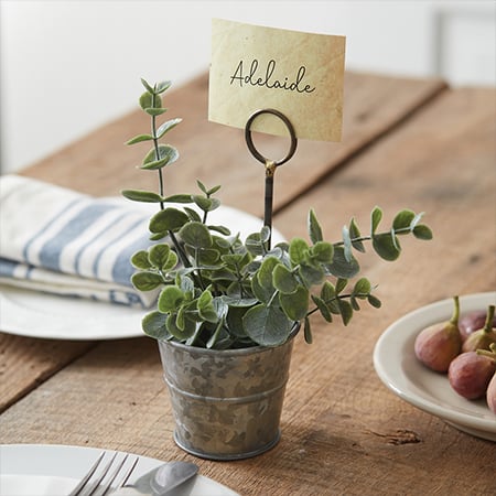 Use this Metal Pail Place Card Holder in your home office to hold business cards, pens, post-its and even fresh greenery! We LOVE the idea of using these for your outdoor gatherings as name cards for your guest seating... what about a rustic wedding?! Fill each pail with flowers and add decorative name cards on top! Guests will be in awe... and they'll never know you got this steal for such a low price! This set of FOUR is truly budget-friendly!