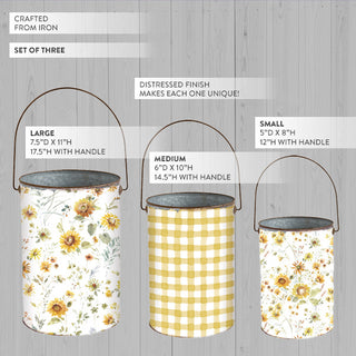 Large: 7.5"Diameter x 11"H - 17.5"H with handle - Packed: One Set per package (you will receive three Metal Pails)