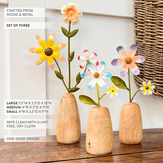 - Set of Three – Includes three uniquely designed wooden bases, each showcasing a different hand-painted metal flower.
